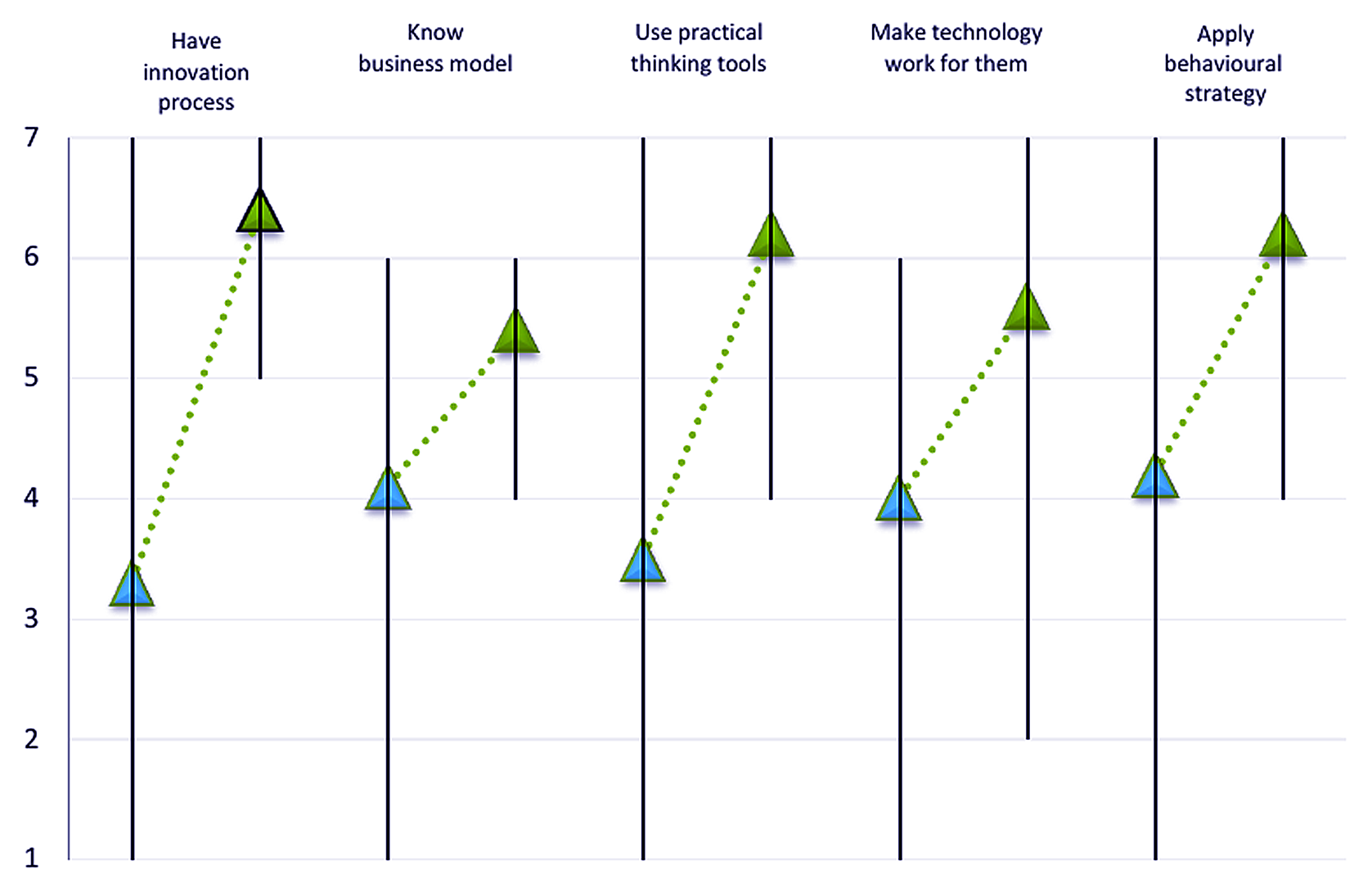 “82% of businesses…now more likely to experiment with new products and services…the improved agility…has been durable…One business reported additional turnover impact of £80,000 already achieved.”